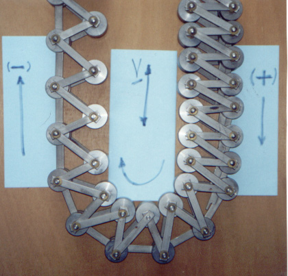 A foto ao lado mostra somente uma parte da lagarta referente a uma tentativa de protótipo. Observar as articulações repetitivas e as travas de armação das aberturas.