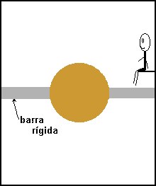 figura elev.gif,— em repouso no espaço (por exemplo, em relação a "estrelas fixas"). Porém num espaço muito especial: Ele está situado entre dois corpos planetários imensos, envoltos por uma película comum e constituídos de um material fluido de elevada densidade; e