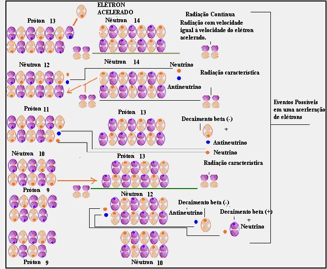Esquematização da emissão de radiação por aceleração de Elétrons em Catôdos, baseada no modelo nuclear proposto: Clique na figura para ampliar